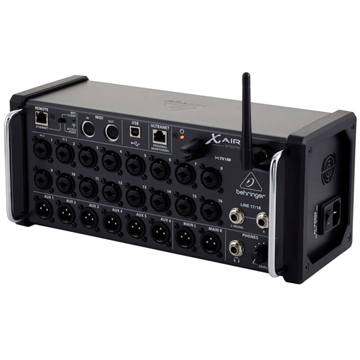 The Behringer XR18 is a compact 18-channel digital rack mixer with 16 MIDAS mic preamps and wireless tablet control. Ideal for live bands, events, and touring setups, it provides powerful mixing, built-in effects, and multi-track USB recording in a portable stagebox format.