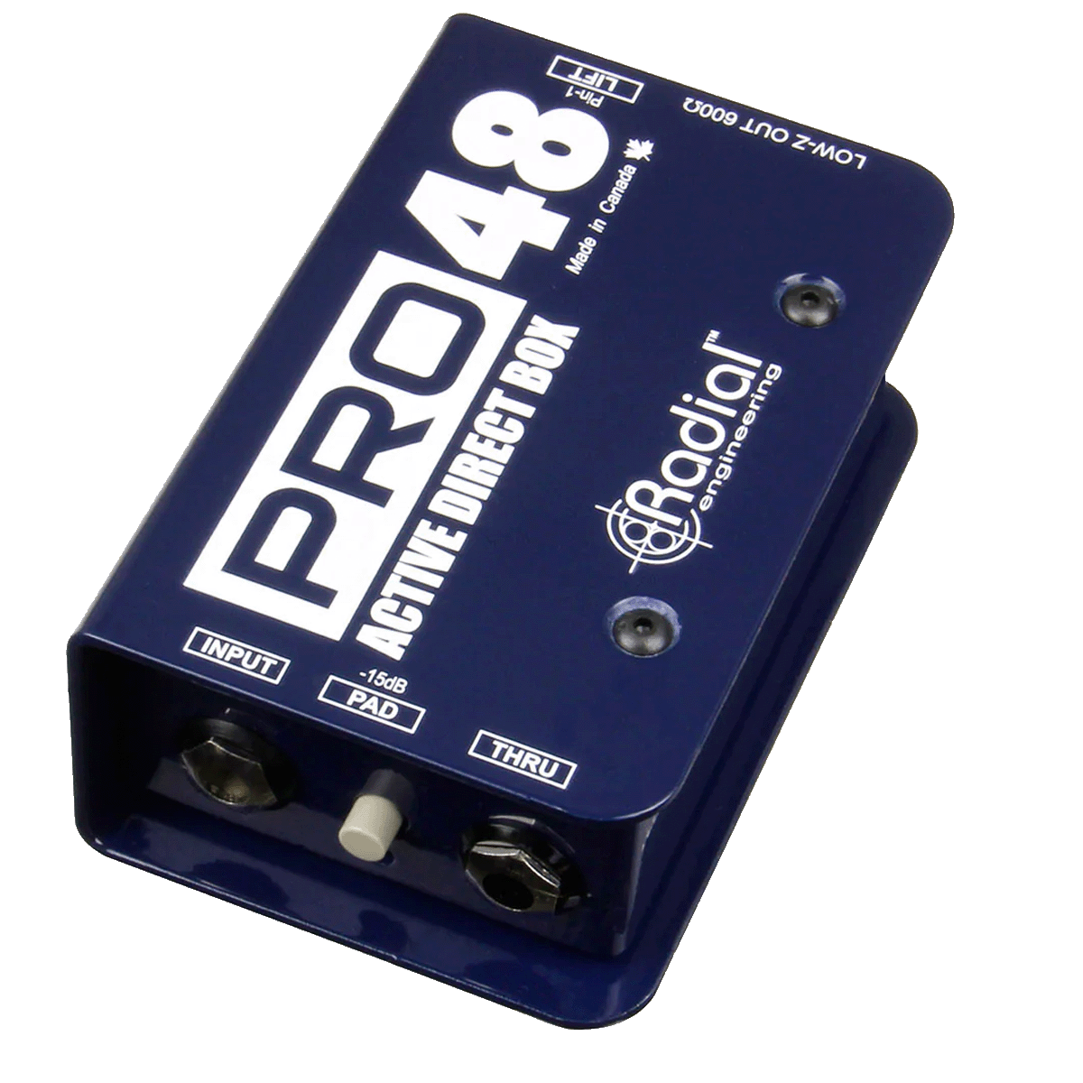 The Radial Pro48 is a professional active DI box used to connect instruments like bass, keyboards, and acoustic guitars to a PA system. Powered by phantom power, it provides a clean, reliable signal for live sound and events.